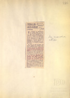 Artículo con notas manuscritas. Breve texto en que a pesar de estar en contra del cambio de estatuas en la Plaza de Armas, reconoce la intención del homenaje al Padre de la patria.